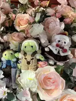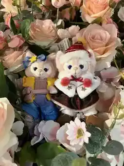 You can also take out the keychain dolls you bought at Disney and place them on the background of flowers. They will look great in photos.
