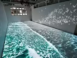Hong Kong electronic musician and multimedia artist Cai Shihao is good at using the interaction between music and images to broaden the audience's associations with time, geography and space. He chose "Silence and Rush" as the exhibition title and constructed a unique space in the exhibition space of Oil Street Warehouse, formerly a yacht warehouse, through 360-degree projection of beach scenes, fast-paced and dense urban images, natural waves and the beat of electronic music.