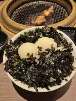 Finally, of course, there is no shortage to promote the croissant rice, the self-service form of seaweed and sauce, spring onions, the key is to remember to order the hot spring egg, mixed together is very delicious