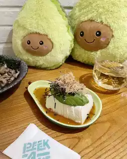 When I ordered food on my phone, I saw a few snacks to choose from. I wanted to eat avocado, so I added this. I didn’t expect that there was a bunch of bonito shreds on it, so it’s not vegetarian. I had to manually remove it. If you are a vegetarian, be careful.