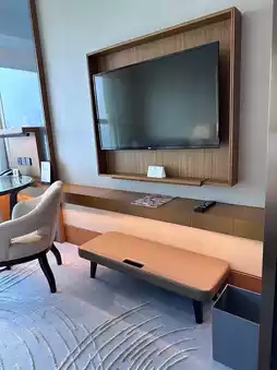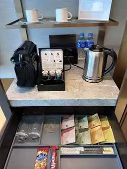 The in-room minibar ➕ drinks in the fridge are available for free, and there is an air freshener.