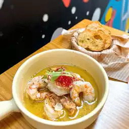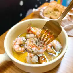 The prawns are very fresh, the meat is crispy and bouncy, and after frying, it is more delicious to eat with garlic slices and garlic oil! The French bread is baked very crispy and delicious, dipped in a little garlic oil to eat, evil and super delicious🤤