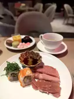 After the main course, of course we went to the buffet area to get dessert. Desserts include chocolate cake, macaroons, lemon tart, mango pudding, sugar🍬, cotton candy and more. I'm quite satisfied as a dessert lover!