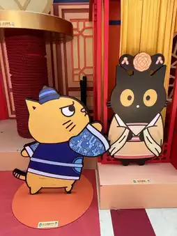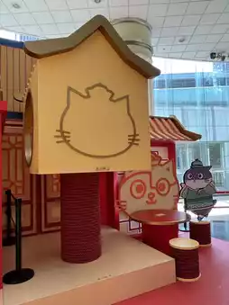 The Yellow Ama "Sleep" Peaceful Bed Palace in Ma On Shan Plaza, with a golden sparkling super three-dimensional morning golden hot spring bath, and a cat sucking pavilion, praying for the new year, a giant cat grab frame and cat house designed for the "yellow" clan Mido-tall inflatable three legs, standing in the golden hot spring bath in the morning light, are particularly graceful and gorgeous.