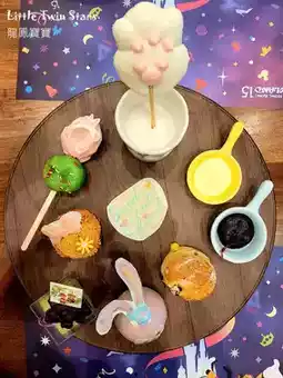 The desserts are very exquisitely shaped, this time mainly with Duffy and friends cartoon characters, rabbit StellaLou cake with the Easter theme, very cute and festive.