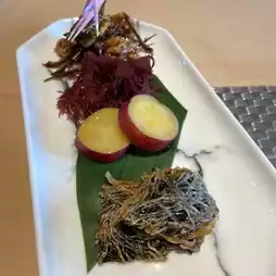 Then there was tea bowl steamed and three appetizers, fried white rice fish seaweed crispy and delicious, samosa sweet potato sweet and soft, walnut little girl fish (little girl is the name of the fish) taste quite special!