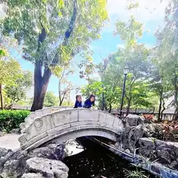 The park is not small, in addition to a small stone bridge, there are several pavilions of different designs, there is also a large open space for children to unwind, and there are quite a few people with badminton to play 🏸