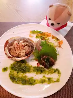 💥South African abalone/Seared French duck liver, both foods have two ways of eating. The former is eaten directly to taste the original flavor of the food. The latter uses the sauce on the dish to enhance the flavor of the food 😋. The abalone has a fresh and crisp taste, and the duck liver melts in your mouth.