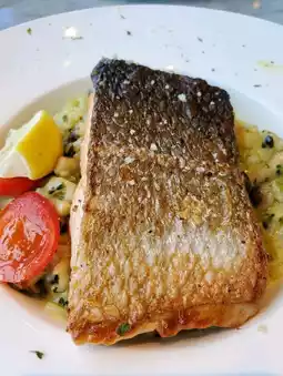 The salmon was very large, the salmon skin was crispy, the pasta was soft and just right, and the basil cream was more flavorful