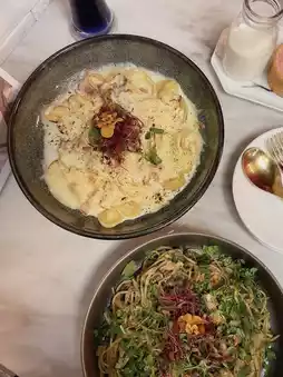 It looks quite beautiful 😝 Smell a very fragrant rich cheese flavor 🧀 but eat the cheese flavor is not heavy will not have a very filling very sinful feeling can be said to be a lighter version of cheese pasta 🍝 remember to match hot food!