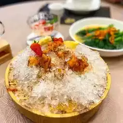 This is one of my favorite dishes 🥰 Unfortunately, not every restaurant has it 🥲 The ice is covered with freshly fried sweet and sour pork, then iced with fresh pineapple and strawberry, looks attractive 😍 The sweet and sour pork is cold on the outside, crispy on the outside and hot on the inside, small and sweet and sour, a bite is so good for me 🥰