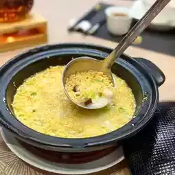 The rice soup is made with chicken broth, and white rice, vegetables, shrimp and mushrooms are added. Before eating, pour crispy rice. The taste is very rich and the taste is very sweet😋 Friends are full of praise, highly recommended👍🏻