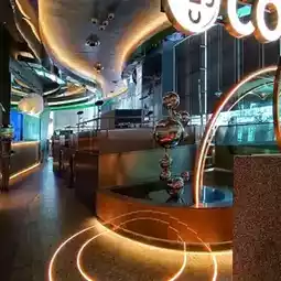The newly opened Coucou Hotpot & Teahouse (Selected) Taikoo City store has an interior decoration with the theme of "Lanting Collection". The large-scale stainless steel art installation starting from the gate is a modern way to present the beautiful scenery of mountains, rivers and stones🏞️⛰️.