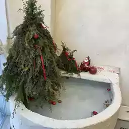 The interior of this cafe is so stylish, with flowers and plants decorated in what looks like a bathtub filled with water, making it so cute!