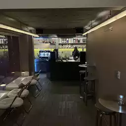 There's spacious seating in the basement, on the first floor, and on the rooftop,