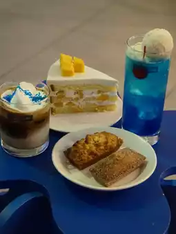 Vertical Coffee is a cafe with a signature blue color theme. The cafe is filled with blue-themed images, and even the drinks have blue accents. The cream soda I ordered was a refreshing blue drink that looks perfect for cooling off on a hot day.