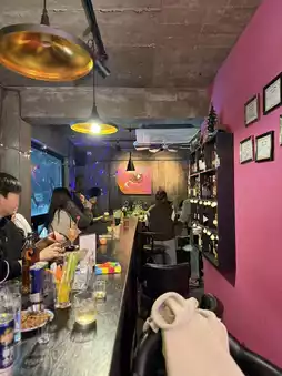 Tucked away on the second floor of a Hongdae alley, Feather is a cocktail bar with subdued lighting and a cozy atmosphere, perfect for a quiet drink.