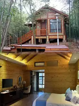 As the first domestic platinum five-star hotel of its kind, it boasts expansive garden scenery with hot spring pools and buildings nestled among them. Dwell by the river at dusk, sleep to the sound of water at night, and at sunrise, lean on the railing to gaze at the water and be filled with emotion.