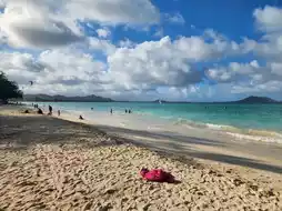 The highlight of this trip is Kailua Beach. About a 45-minute drive from Honolulu, this beach on the east coast is a quiet spot loved by locals, away from the tourist crowds. The white sandy beach and turquoise blue sea create a picturesque setting.