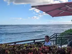 You can choose to sit at the bar counter inside the restaurant or on the terrace where you can see the ocean of Waikiki🏖️