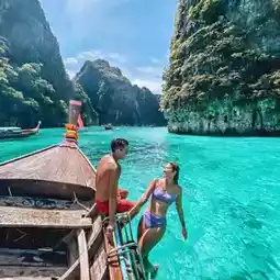 There is a particularly photogenic and clean beach 🏖️ where you can swim. There is a net that blocks off the beach, so you won't swim out too far. It feels relatively safe, and the sand is super clean and fine. It's a great place to take pictures 📷 even if you don't swim.