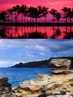 - Kīlauea’s lava carves crimson trails in the night, meeting the Pacific with towering steam curtains; atop Mauna Kea, observatories bring the Milky Way within reach at 4,205 meters. On Waikiki’s golden sands, surfers silhouette against Diamond Head, while sea turtles glide through turquoise waters over coral reefs.