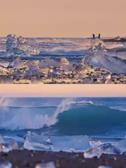 This is the "Lonely Planet on the Aurora Belt" — when the Northern Lights dance above the black sand beach, the diamond glacier lagoon reflects the green light, and volcanoes and glaciers appear faintly in the mist... It feels like standing on the Earth's crack, witnessing nature's most primal power.