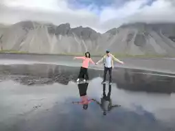 Vestrahorn, located in southeastern Iceland near the town of Höfn, is one of Iceland's most iconic mountains, renowned for its stunning jagged peaks and surrounding black sand beaches. At high tide, the water creates stunning reflections, offering breathtaking photo opportunities.