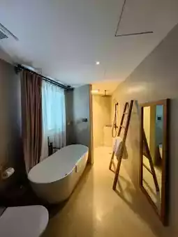 3. The homestay blends with nature, not at all discordant, the room is large, with floor heating. The sofa is very comfortable. Small snacks and drinks are given away! The bathroom has a bathtub, and the quality of toiletries is very good! It is very convenient to eat in the restaurant, hot pot noodles and vegetables can be reserved in advance.