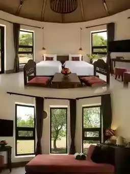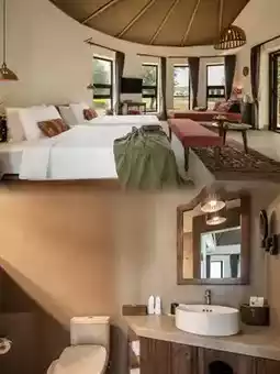Standing in this circular structure, surrounded by elm trees, every angle is a unique natural scroll. The guest room area is unique, built around the elm forest, each window frames a beautiful scenery. The inspiration of the building comes from the Mongolian yurt, the round eaves and the oblique wooden columns are cleverly combined, which not only divides the space, but also perfectly integrates with nature. Here is the secret base on the prairie, waiting for you to explore this original ecological miracle!