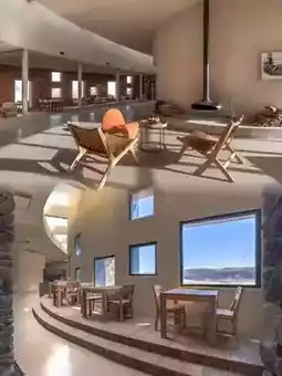My destination on this trip is the Grassland Volcano Hot Spring Resort, hidden deep in the prairie at the foot of a volcano. Before I even arrived, I could see from afar that the hotel's architecture seemed to grow naturally from the grassland. The low-rise silhouette blends into the skyline, and the rugged stone exterior walls complement the surrounding volcanic landscape.