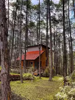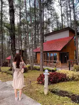 #Pine garden #Three-leaf pine #Wooden house under the shade of pine #Chiang Mai #Summer #Hot #Doi Bo Luang Forest Park #Forest Industry Organization