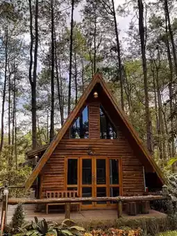 Wooden house under the shade of pine trees, enchanted forest..#must-see‼