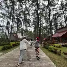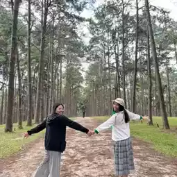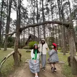 Korean vibes in Thailand, no need to go all the way to Nami Island. This is Bo Kaeo Pine Tree Garden, located in Hod District, Chiang Mai Province. It's very easy to get here; you can drive your own car directly. The area is filled with pine trees, perfect for taking beautiful photos. There are accommodations available for travelers who want to experience the night atmosphere. The cottages are very cute, and there's a lovely café where you can sip coffee. It's an impressive place, and the photos turn out beautifully. If you love selfies, you must come here; you'll get tons of great shots. Don't forget to visit, everyone! 😘