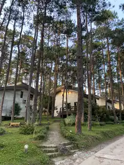 Here, there are both houses and tents with bedding 🏘️
