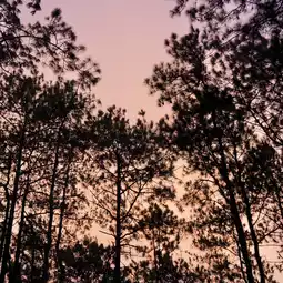 ✨ The surrounding area is surrounded by tall, open pine forests.
