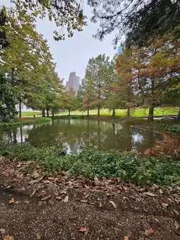 While it offers you the usual nature comforts that comes with a park. What's special about the same Houston park is the Heritage society. My favourite spot was that big tree outside with a bench. You could spend hours there reading. Unfortunately in my case reading on the phone. But such a soothing and picturesque setting. One the other side there is a pond too. This area is massive and allows for lot of things.