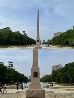 There are many green lawns, fountains⛲️, and other attractions in the park, making it a great place to take photos📷. The Sam Houston statue, a Houston landmark, is also near the park. There is also a monument similar to the Washington Monument, and a small square similar to the National Mall in Washington DC. The styles are very similar, and many people take wedding photos in the park💕.