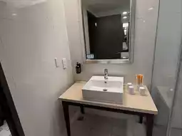 The bathroom is separated into dry and wet areas, and has a bathtub, which is pretty good. There are no toiletries, and the shampoo and shower gel are hung on the wall. Environmentally friendly accommodation.