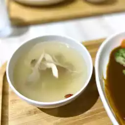 The side dishes also include mushroom soup, which can be refilled unlimitedly.