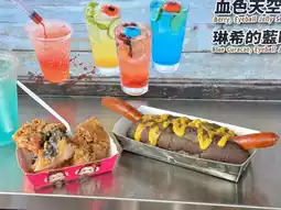 The food at the outdoor Halloween food trucks is pretty delicious. I really liked the black ice cream this time. There are also long hot dog burgers (not suitable for children because they are spicy). As for the drinks, I think they are all the same, mostly soda.