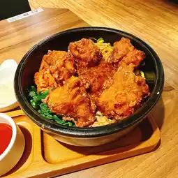 Spicy beef soup rice, fried chicken bibimbap, Korean fried chicken rice cake (secret sauce), crispy fried seaweed vermicelli rolls, condensed milk fried rice cake, green grape flavored soda, watermelon flavored soda - set meal for two $988