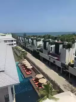 The uniqueness of this place is the two-sided building with a swimming pool in the middle. And the lower floor room is connected to the swimming pool through the room's balcony. The upper floor rooms are more spacious, with a wide view of the sea. There is also a rooftop where you can go up and soak in a Jacuzzi. It depends on what style you like.
