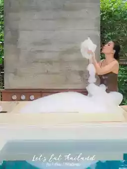 🔴 The room I stayed in was the Oceanbed Pool Villa 🏊♂️, a large room measuring 100 sq m. with complete amenities. There is also a coffee maker in the room. The pool is long enough for you to swim until you are out of breath, with a Jacuzzi where the butler can whip up bubbles for you anytime before 9:00 p.m. There is also a Bose speaker to listen to music by the pool.
