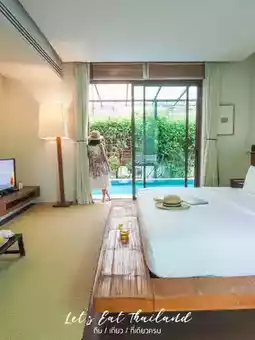 Putahracsa Hua Hin Resort 🏨 Putahracsa Hua Hin Resort is a small minimalist hotel with white and green trees. It looks warm, clean, and very comfortable. It is really suitable for relaxation. Putahracsa Hua Hin Resort is divided into 2 zones: Sandside (not on the beach) 🏝 and Oceanside (on the beach). There is only a small road in between. But no matter which side you stay in, you can use the facilities on both sides.