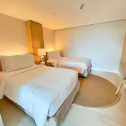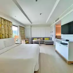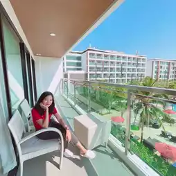 We stayed in a 2-bedroom Family Suite, which is great, 77 sq.m. There is 1 king-size bed and another bedroom with a double bed. This room can accommodate 4 people. The room has many amenities. There is a sofa, a writing desk, a TV, a dressing room, and a wardrobe. It is very comfortable. The bathroom is also spacious and has all the amenities. When you open the balcony, you will see the view of the swimming pool. Sit and relax in the breeze.