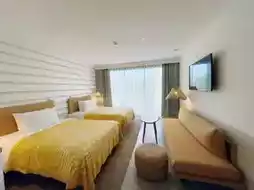 The Standard Hua Hin Hotel has many photo spots, especially the beach umbrellas and poolside umbrellas, which are striped in yellow and white, which is the identity of this hotel. Anyone who sees it will know where it is. Even though this hotel has preserved large trees, there is also a large lawn, which makes the atmosphere quite shady and very relaxing. The hotel has 2 buildings, divided into Building A and B, which are next to the lobby. To get to the beach, you have to walk through a large garden, pass the gym and spa, and then you will see pool villas on both sides of the walkway. However, the villas will be blocked by fences and trees. At the very end, you will find a swimming pool and 2 Thai and Italian restaurants. There is also a service to borrow mats to sit on the beach.