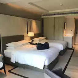 Take your girlfriend to relax. Really relax. Choose to come to Hua Hin beach. Stay at Marriott Resort & Spa 🧖♀️ Hua Hin because it is beautiful, luxurious, 5 stars as rumored. My girlfriend likes to swim. So I think this place is suitable. We choose to stay at pool access so we can play in the water all day. The room next to the pool is very good. The pool is very beautiful. Wow!!! The first time I came, I was really impressed with this hotel. It has everything. The long saltwater pool is separated into children's and adults' pools. The pool is a loop around the building. The view is beautiful. Another thing I like is the real king size bed. Soft, soul-sucking, suitable for relaxation.