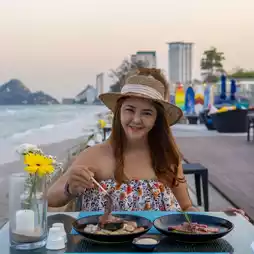Hot like this, you have to find a place to chill by the sea. Try Shoreline Beach Club, a beach club-style restaurant located in the Amari Hua Hin Hotel, which is separated to the seaside side. The atmosphere of Khao Takiab. In the evening, you can book a romantic dinner. Or for those who like to drink and chill, you can sit and sip a drink by the pool and go for a dip.