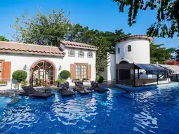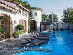 "🏘️Accommodation in the heart of Hua Hin 𝐕𝐢𝐥𝐥𝐚 𝐒𝐞𝐥𝐥𝐞 𝐇𝐮𝐚 𝐇𝐢𝐧 that has entered and made it look like a small village in a foreign country, designed in the style of Seville, Spain, surrounded by trees. With a swimming pool in the center of the accommodation 🏖️